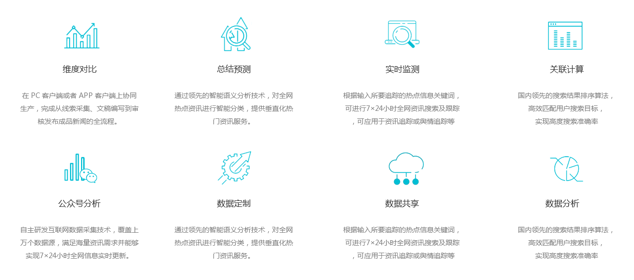 对新媒体进行即时监测,对新媒体的影响力、榜单、内容发布时效性、账号历史发文、网民管住热点、错敏词、文章及评论感情倾向性等进行监控和分析, 掌握新媒体的整体运营情况,实时对各个新媒体数据进行统一监测。